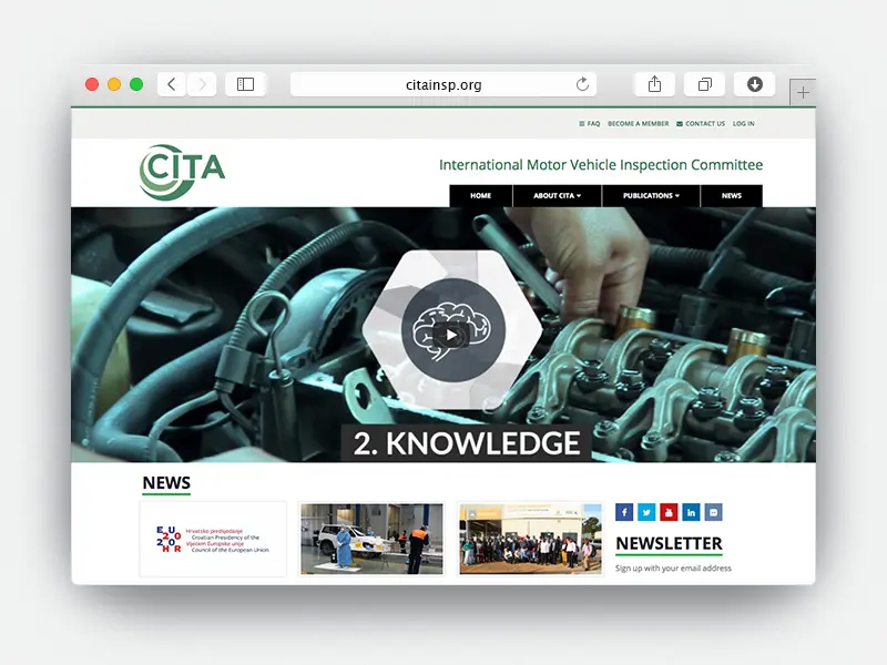 CITA es el organismo con sede en Bruselas, Bélgica que engloba todas las empresas que se dedican a la inspección técnica de vehículos. Nos pidió una completa renovación de su antigua web, con un aire mucho más moderno y adaptada a los estándares actuales.