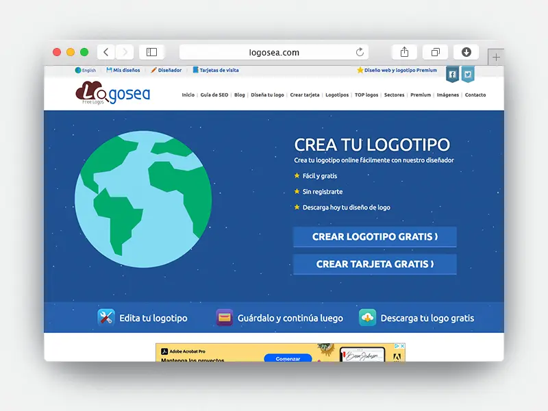 Logosea es una aplicación web que te permite diseñar tu propio logotipo sin coste alguno. Es uno de nuestros proyectos más antiguos y más exitosos, logrando posicionarse entre los 10 primeros resultados de Google en más de 1000 keywords relacionadas con el diseño de logotipos (VER >).