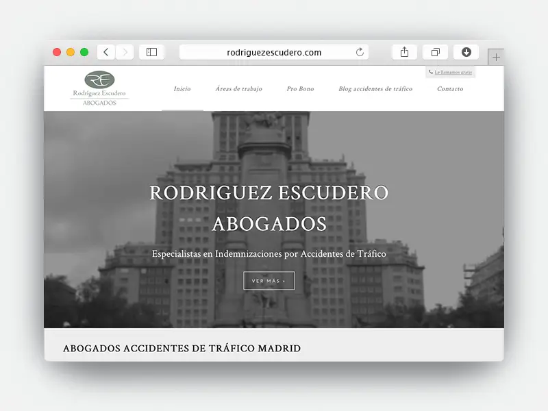 Despacho de abogados en Madrid, especializado en reclamaciones por accidentes de tráfico. Para su web necesitaba generar una sensación de seriedad, para transmitir confianza a potenciales clientes. Se realizó también una campaña de posicionamiento SEO (VER >)